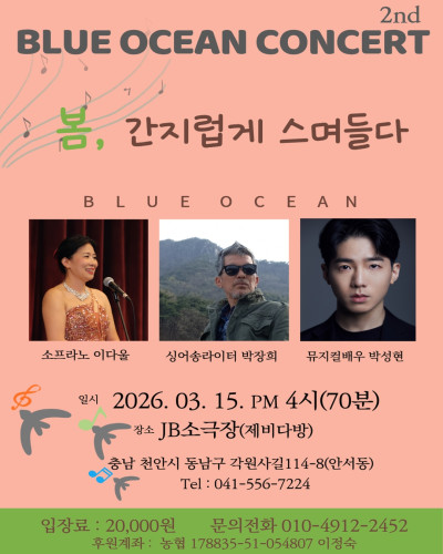 [BLUE OCEAN CONCERT] 봄, 간지럽게 스며들다✅ 일시 : 2026. 3. 15.(일) PM 4시(70분)✅ 장소…